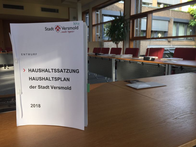 "Dies ist Ausdruck einer verantwortlungsvollen und in die Zukunft gerichteten Finanzpolitik", so der Bürgermeister. Trotz dieser Konsolidierung werde weiterhin in große Zukunftsprojekte für die Stadt Versmold investiert. So stehen für das kommende Jahr die Umgestaltung des Rathausplatzes, der Neubau des Feuerwehrgerätehauses in Hesselteich, umfassende Sanierungsmaßnahmen und IT-Investitionen an den Schulen sowie mehr Geld für die Straßenunterhaltung im Plan.